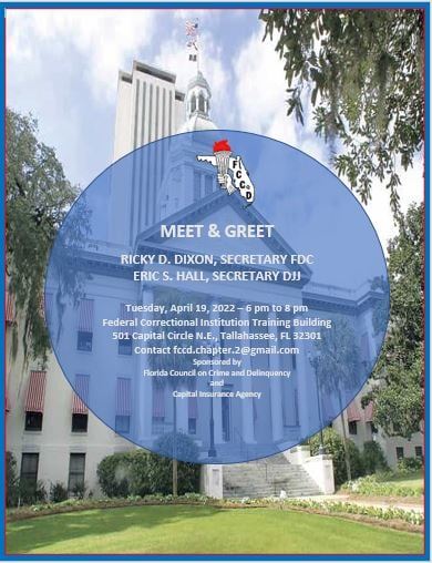 On behalf of the Florida Council on Crime and Delinquency State Executive Board and Chapter 2, we would like to invite you to a Meet and Greet Event to welcome both Secretary Dixon and Secretary Hall.